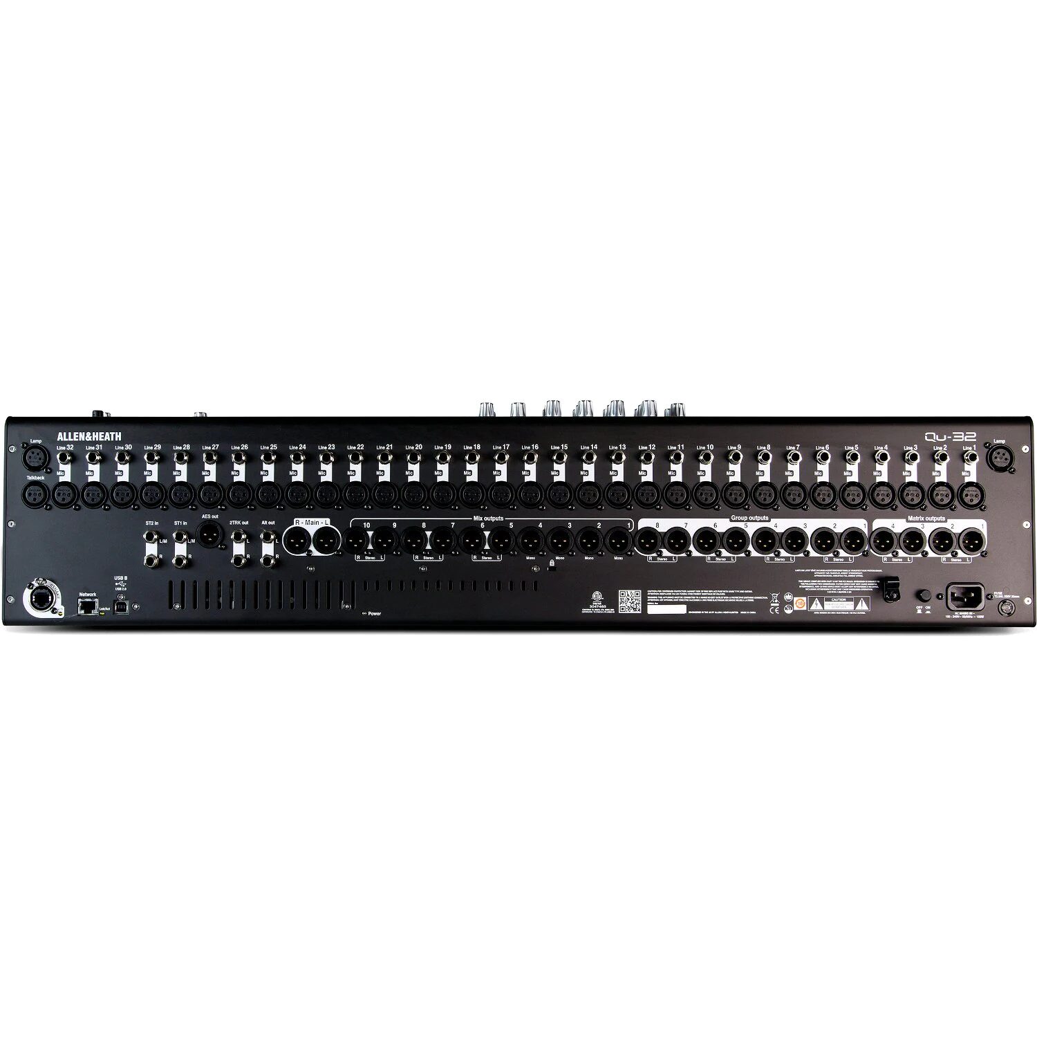 analogue outputs: 28x (stereo Master, 10x mix out, 8x group out, 4x matrix out, stereo 2Track out, stereo Alt out)