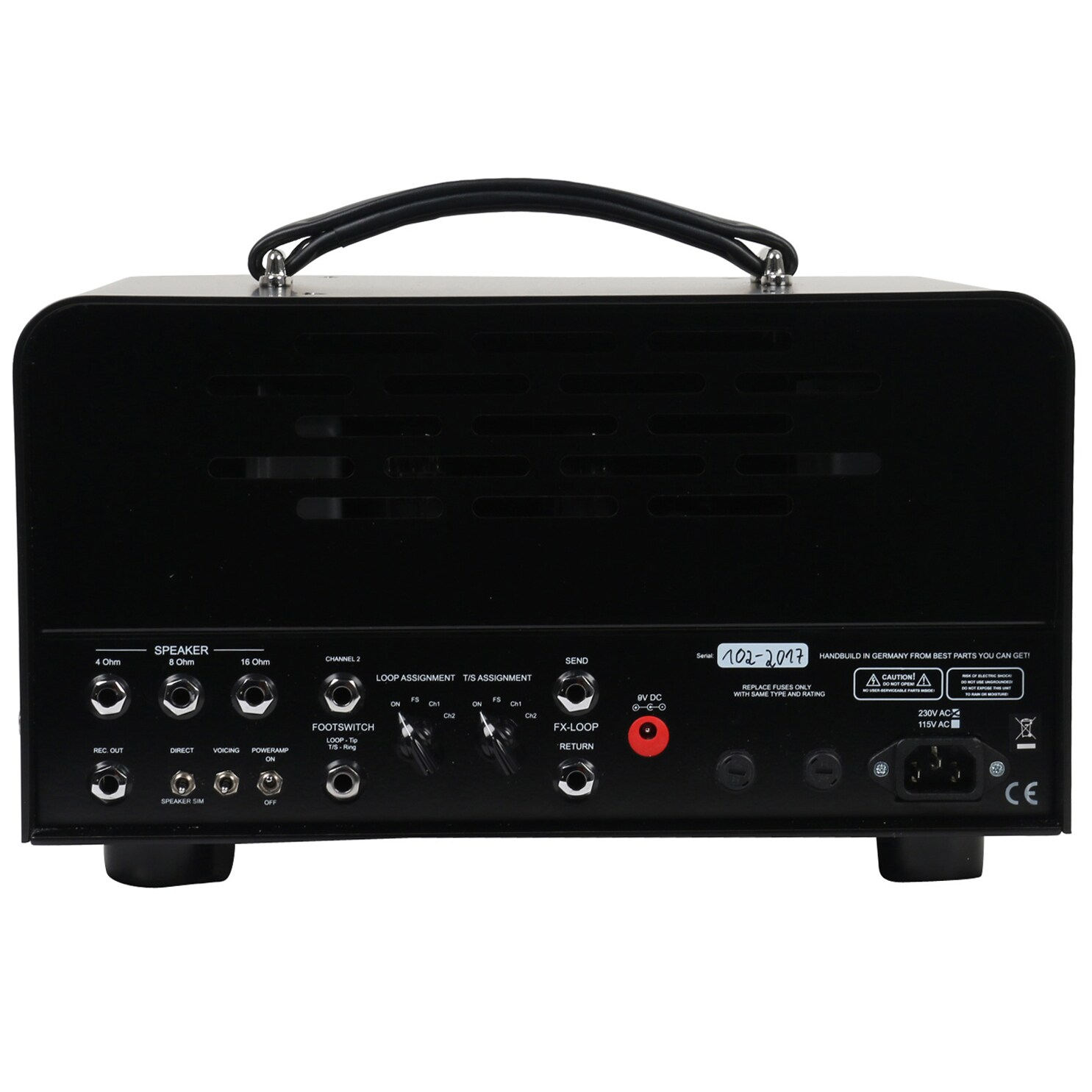 back: direct/speaker, voicing, power amp on/off,