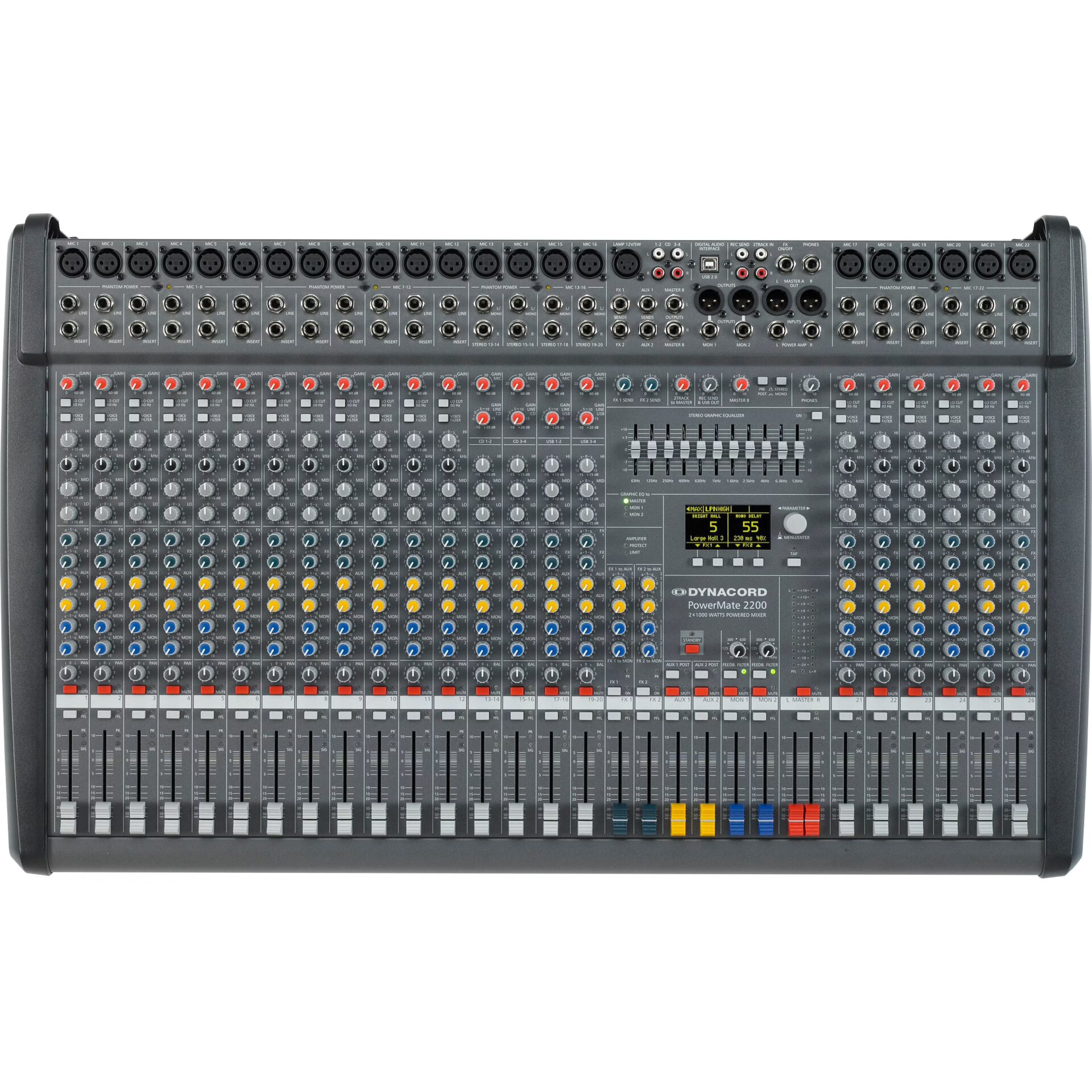 Built-in mixer effects reverb/delay/modulation, master EQ