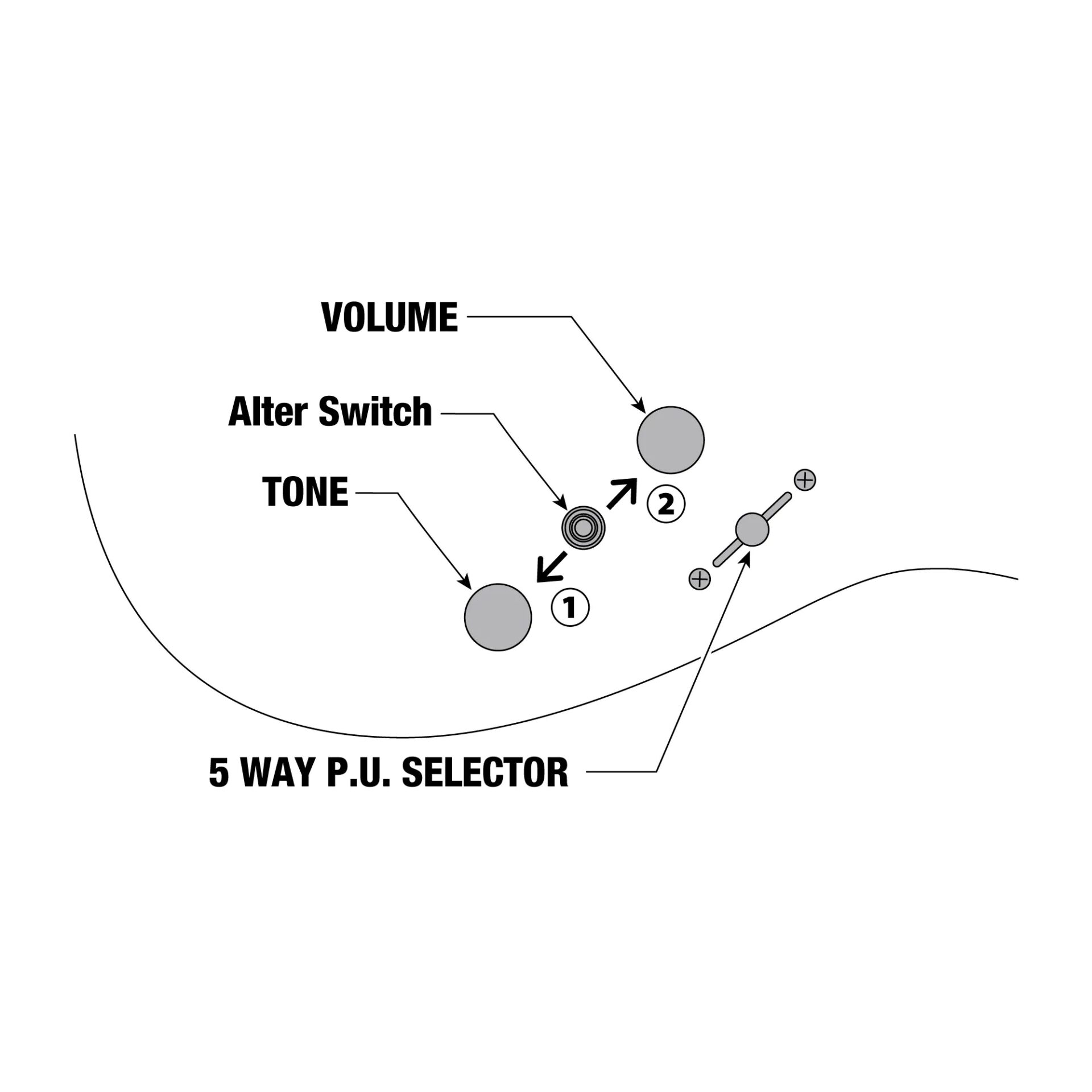 controls: 1x volume, 1x tone, 5-way pickup switch