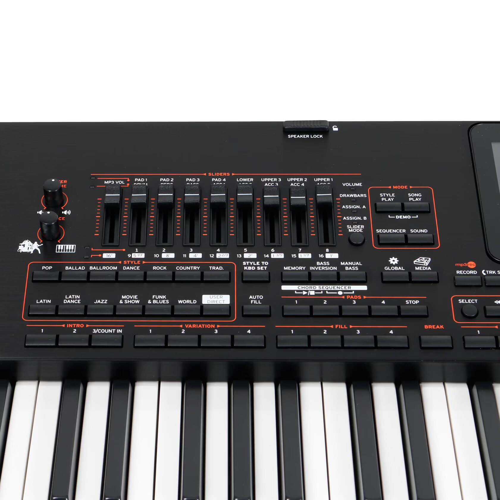 record MP3 files, including styles, SMF, MP3 songs, keyboard tracks, pads, microphone and effects