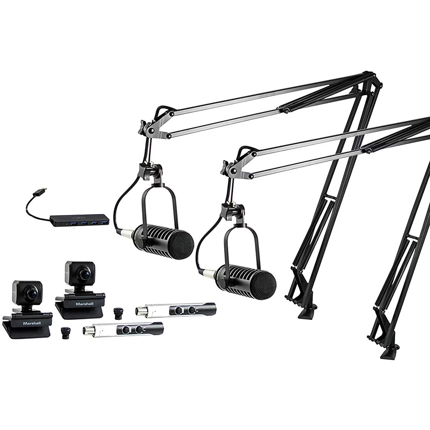 Studio bundle components audio interface, microphone, microphone cable, microphone stand, other