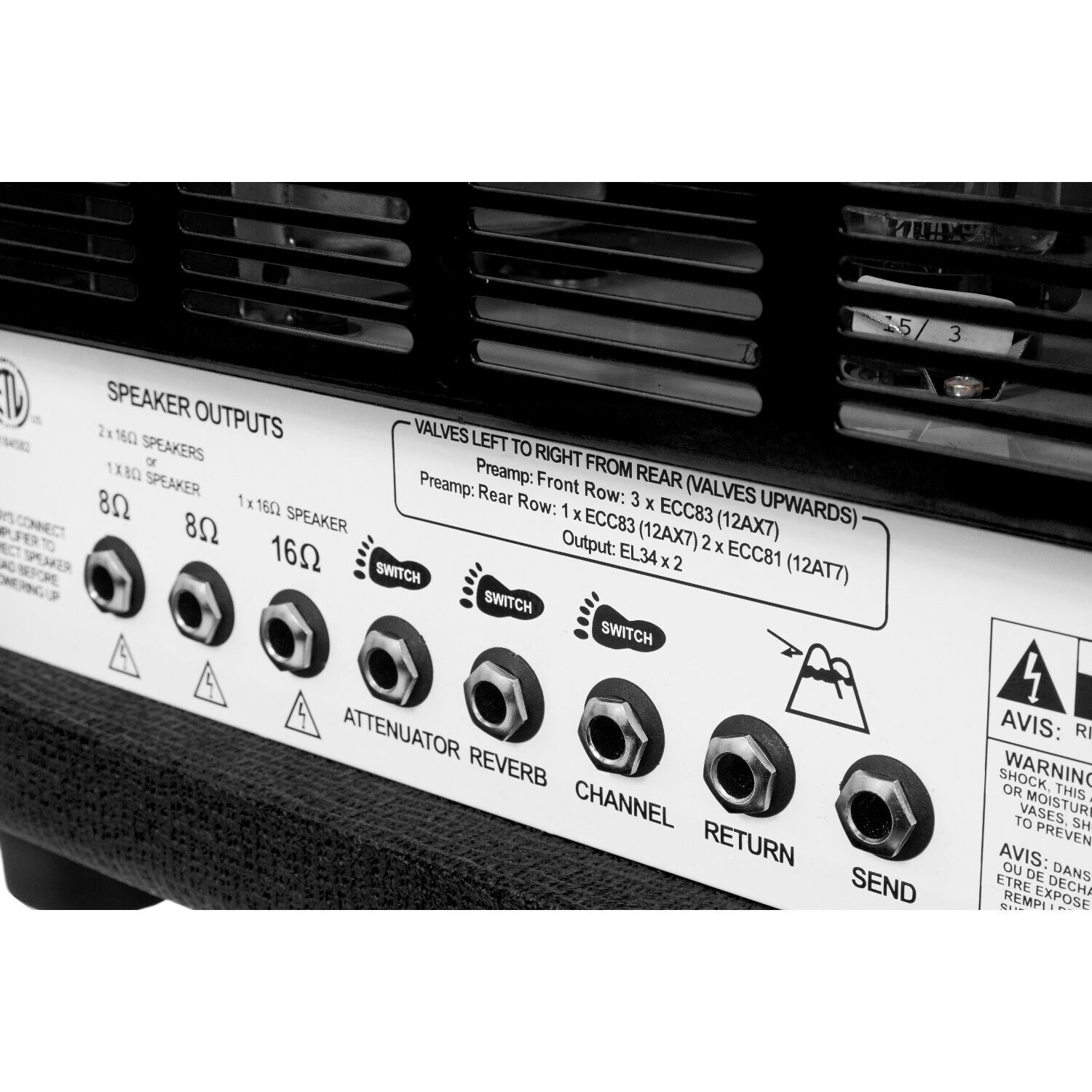 switches: clean/dirty channel, full/standby/half power, mains