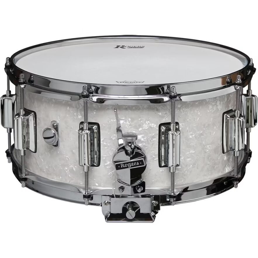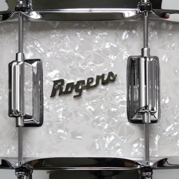 The Rogers 37WMP Dyna-Sonic Beavertail 14” x 6.5” Snare White Marine Pearl