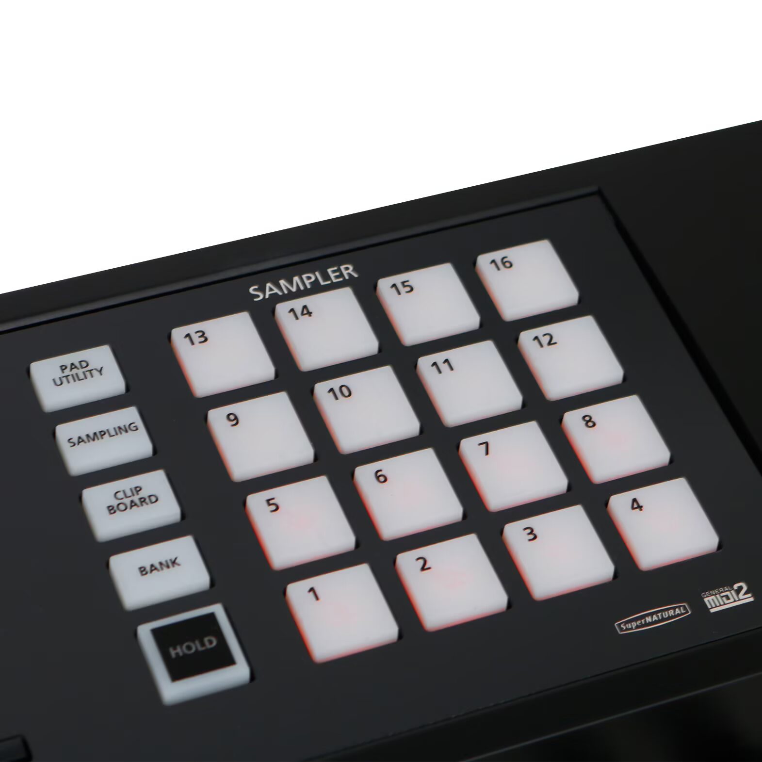 16 illuminated pads (for sample and MIDI triggering, etc.)