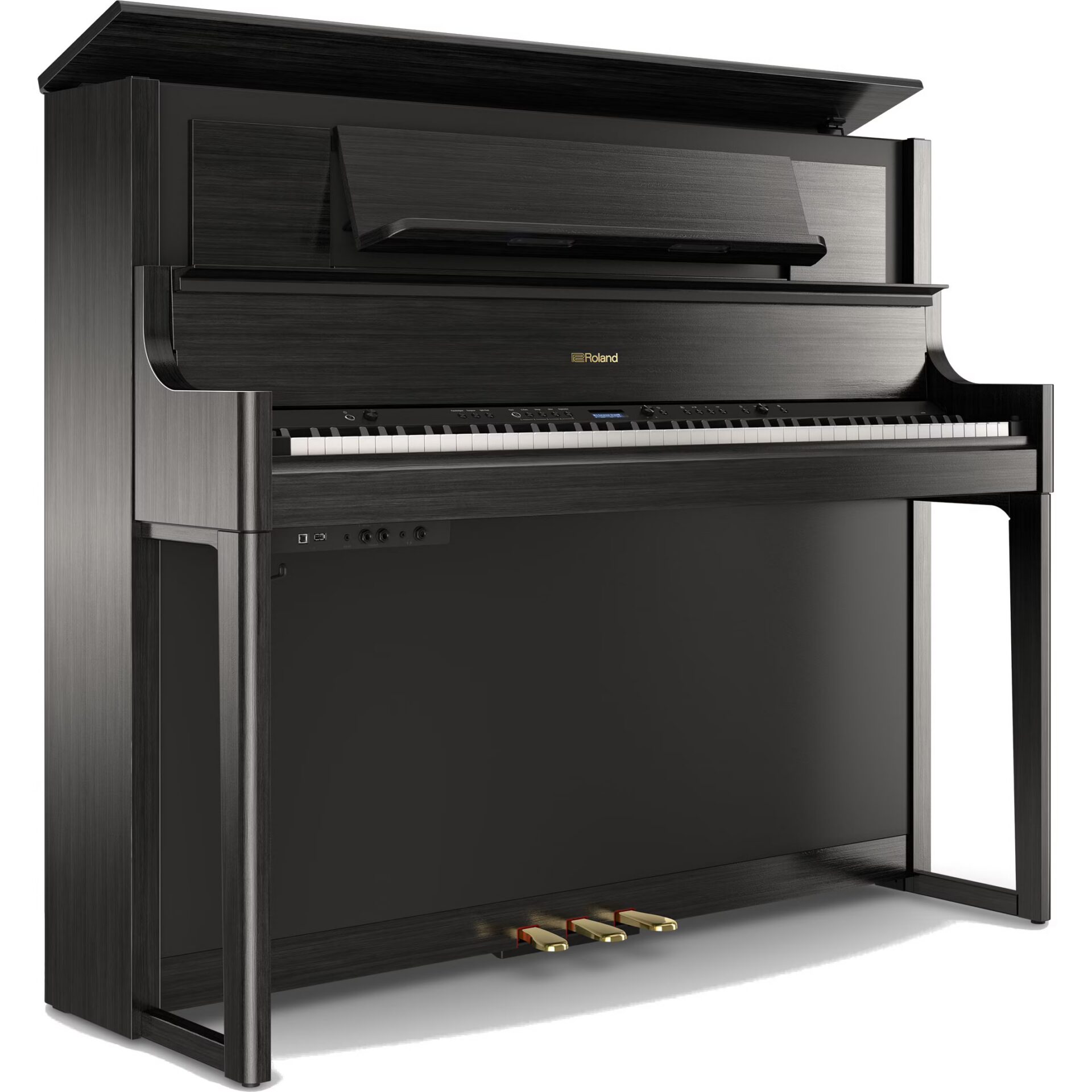 For the LX700 series sound, Roland has strayed from the beaten path. Instead of using samples to emphasize fluctuations in dynamics, the LX708 sound is generated by the PureAcoustic Modelling Technology for a similar sound construction as found in an acoustic grand piano. The way the keys are pressed, the way the hammers hit the strings and the way sound resonates in the sonic chamber, all resemble an acoustic grand piano for ultimate expression and dynamics. To recreate the same feel, the Hybrid Grand keyboard features elongated keys for a lighter feel when you strike them a little higher up. Even the three Responsive Damper Action pedals respond as quickly, accurately and sensitively as top model acoustics. The LX708 is the flagship of its series and, as such, boasts the most powerful speaker system. This version comes in a Charcoal Black finish.