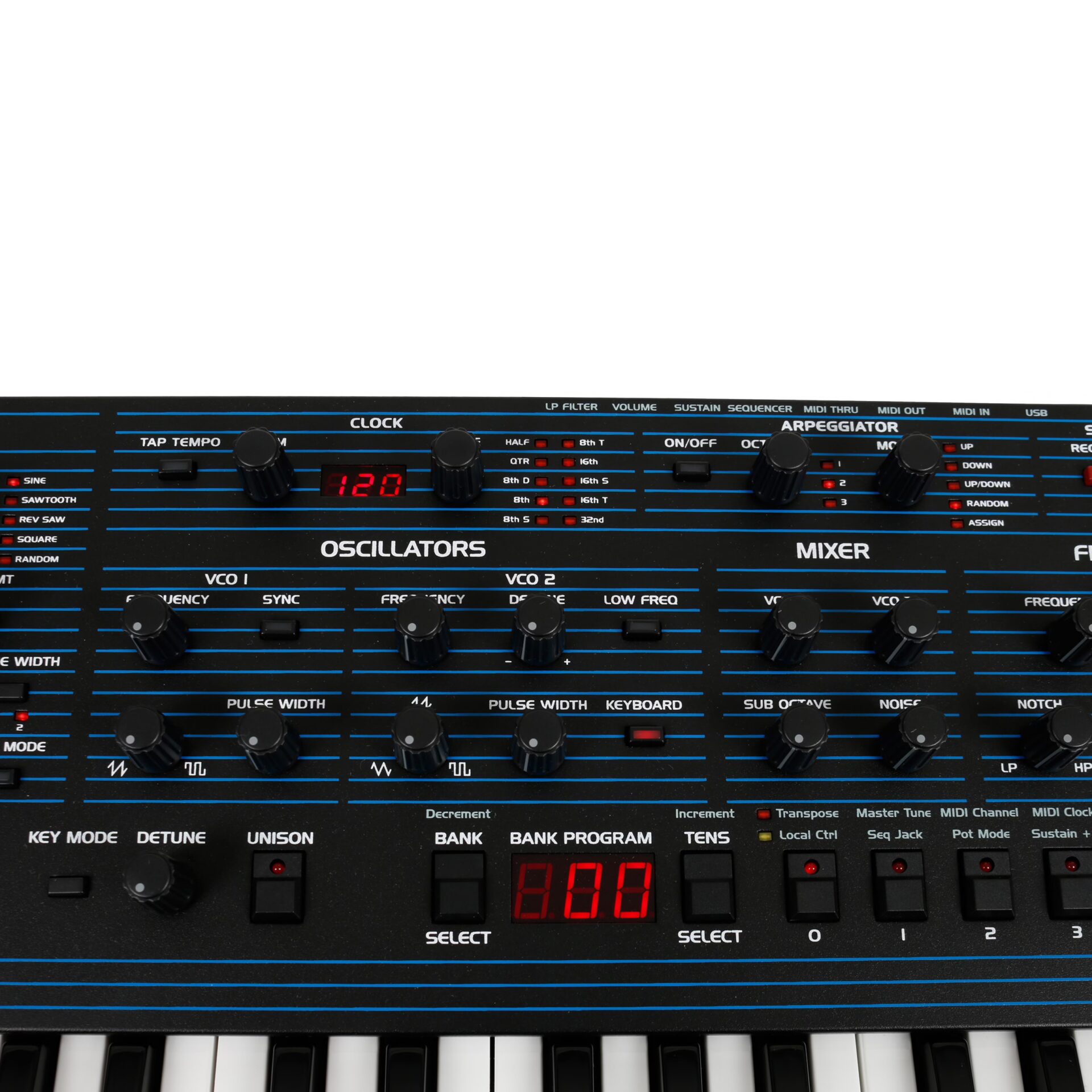 Synthesizer outputs line out jack, headphone