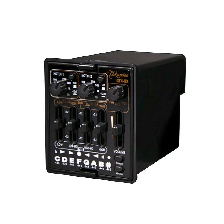 controls: 3-band EQ, volume, AUX PU, semi-parametric mids