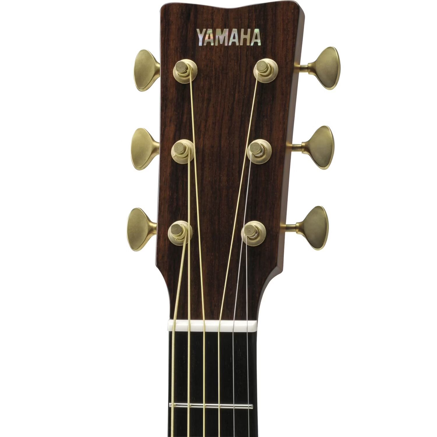 This Yamaha guitar isn’t lacking in luxurious embellishments. The five-piece mahogany/rosewood neck features an ebony fretboard with beautiful wood grain and the characteristic black colour. An ebony fretboard offers a snappier response and feels comfortable and smooth, compared with rougher rosewood. The string action and distance have been optimised to make this guitar as comfortable as possible for modern musicians. Additionally, the interior of the body features improved bracing which works to boost the bass without drowning out the trebles.